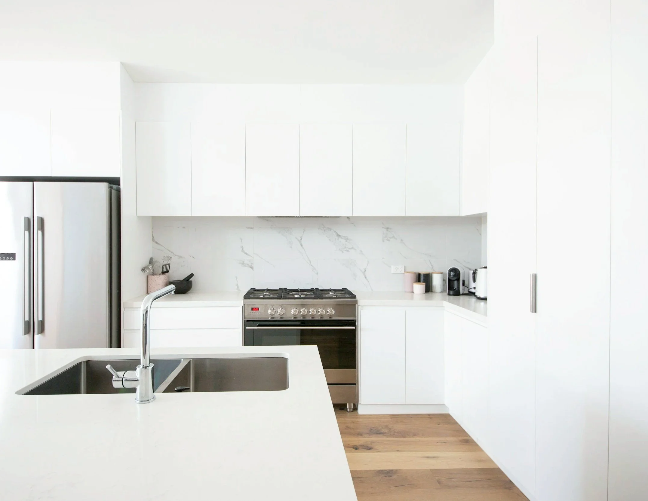 Cabinet doors, stove & oven, countertops, sink, everything but the “kitchen sink” dusting, widows, sweep and mop